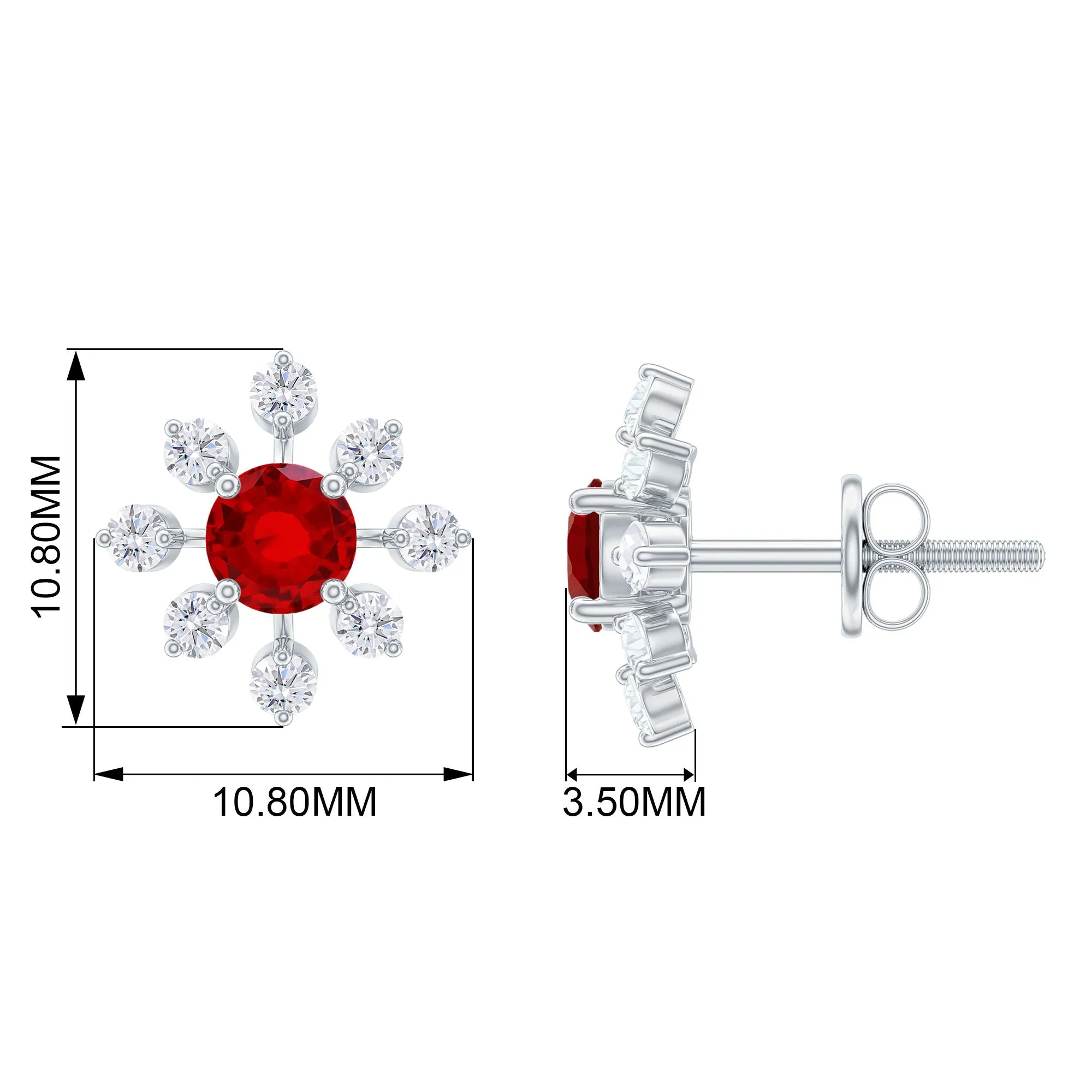 Adorn yourself with these lovely Flower Stud Earrings set with Round Shape Created Ruby and Diamond in Prong Setting. These Floral Earrings are crafted in Gold to create a luxurious appearance.