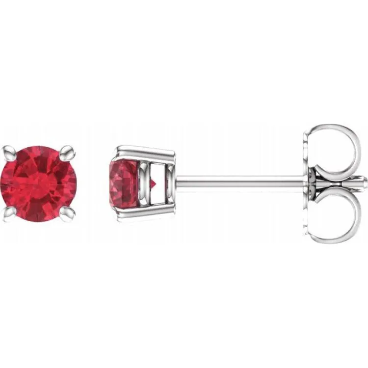 1874 / 14K White / Set / Round / Natural Ruby / Pair / 4 Mm / Friction / Friction Backs Included / 4-Prong / Polished / Natural Ruby Stud Earrings