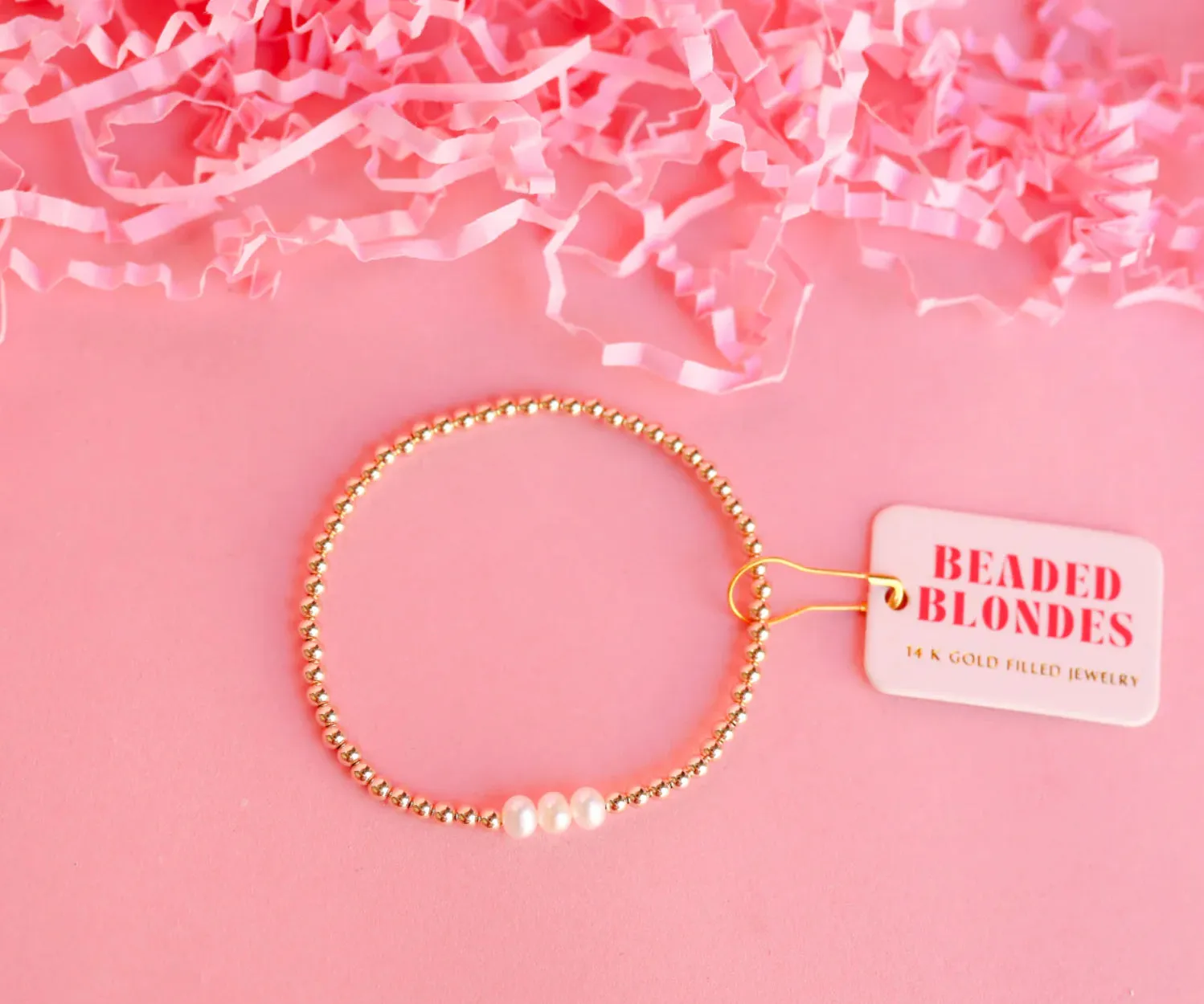 gold beaded stretch bracelet. Made from 14 k gold filled beads so perfect for everyday wear! Sweat proof, water proof and tarnish free! 6.75inch
