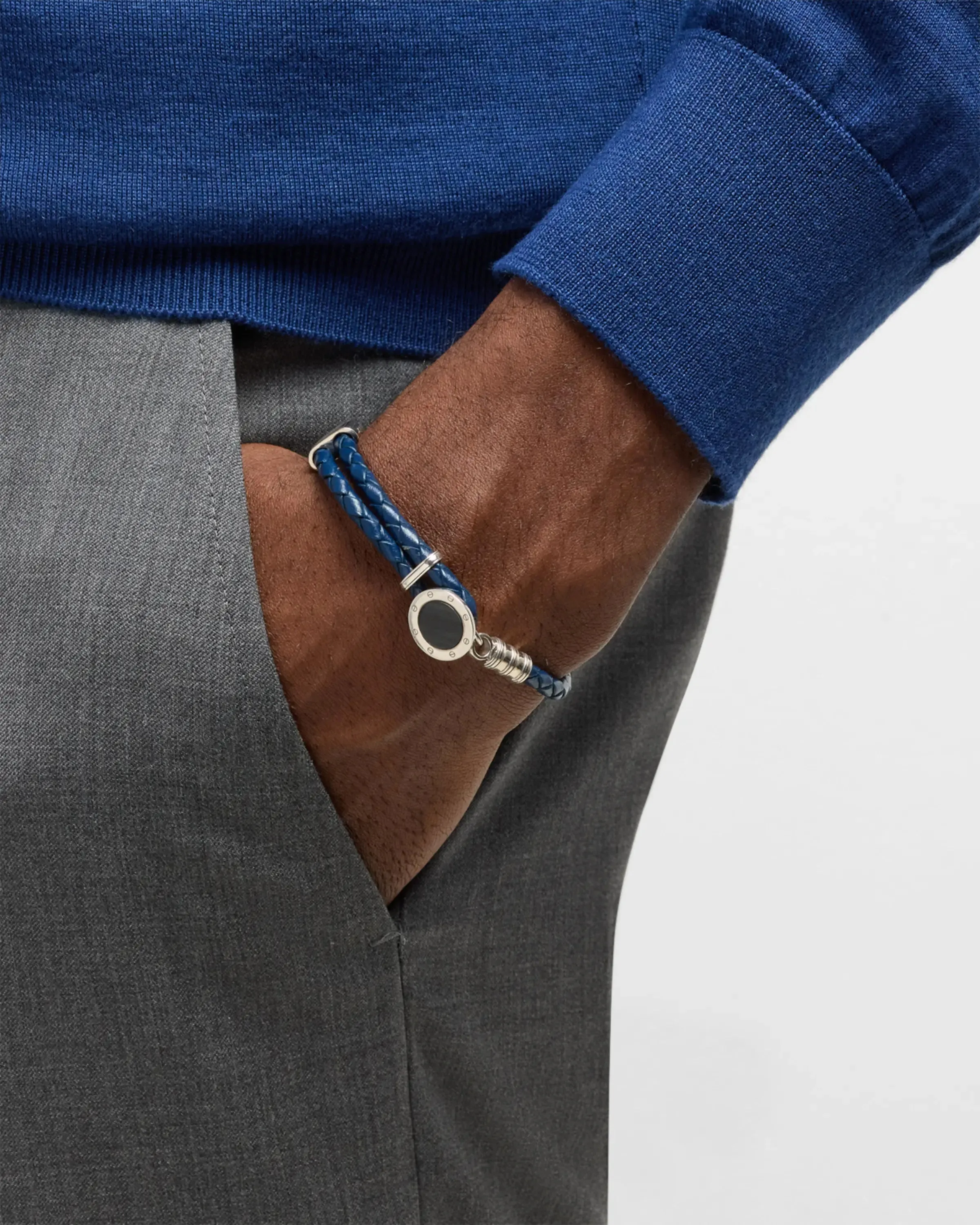 925 sterling silver with Blue Tigers inlay and Spanish Braided calf leather bracelet.