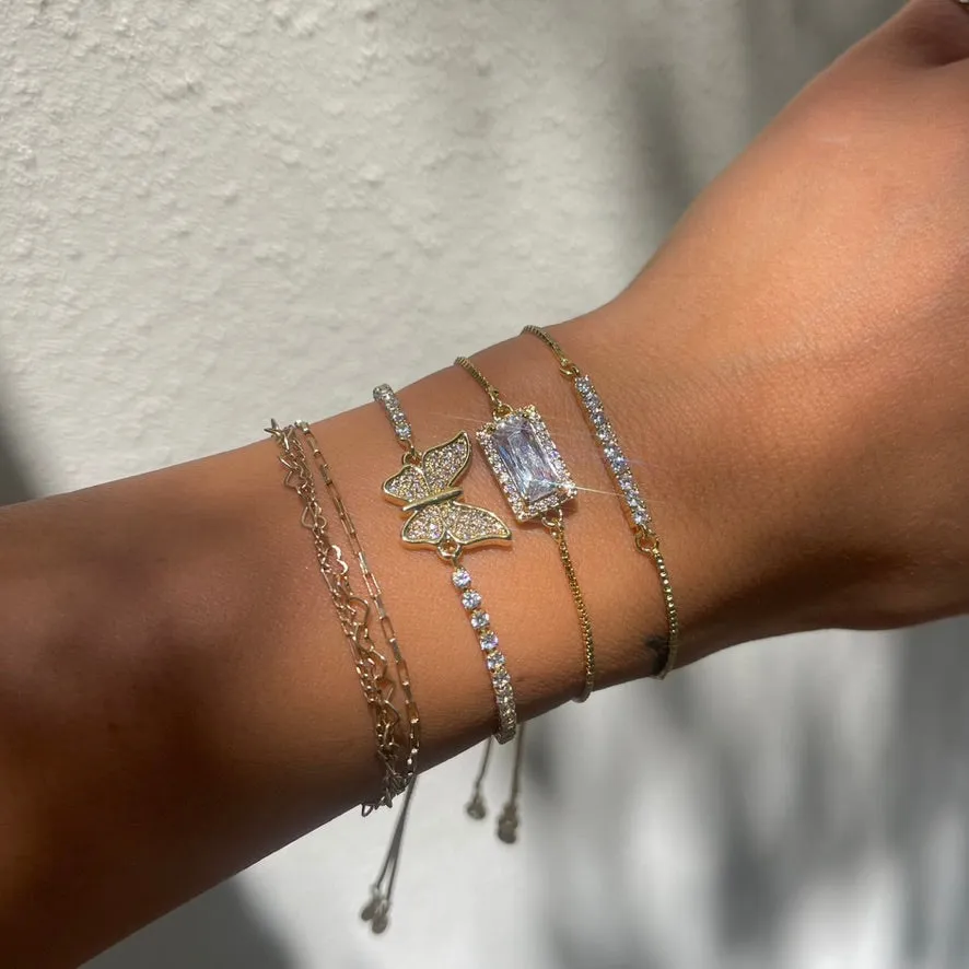Pretty, dainty, and so versatile-we love the look of this dazzling bracelet! These have adjustable beads on the back, making them super easy to slide on and off the wrist.