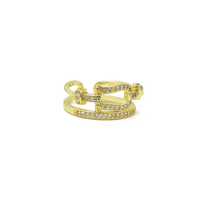 Gold Cubic Zirconia Multi Strand Adjustable Ring