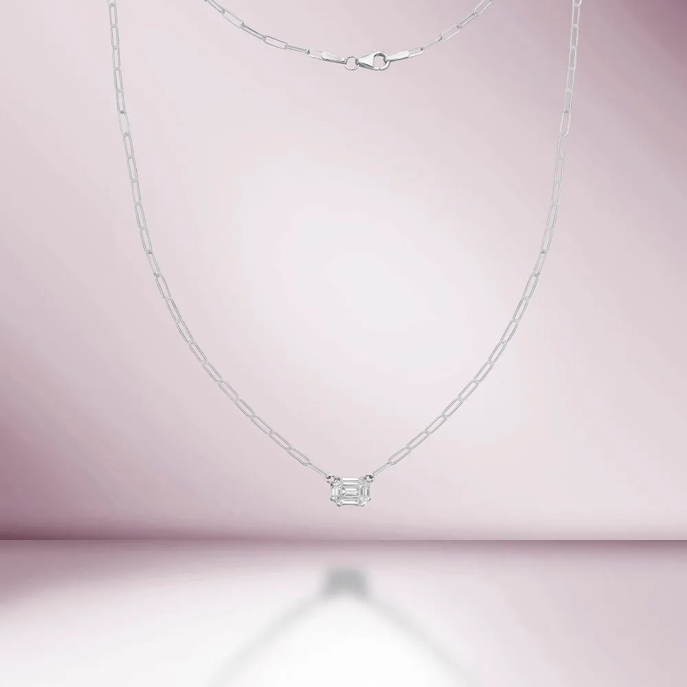 An Illusion Rectangular Shape Emerald Cut Diamond Paperclip Necklace would be a unique and fashionable piece of jewelry, combining a classic diamond shape with a modern chain design.
